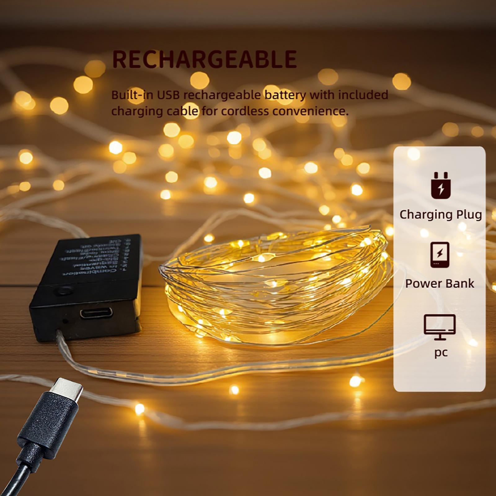 - Product Name: USB Rechargeable Fairy String Lights